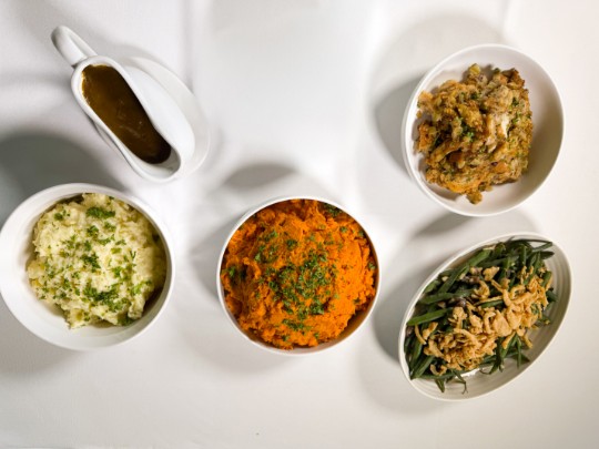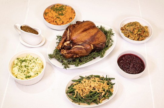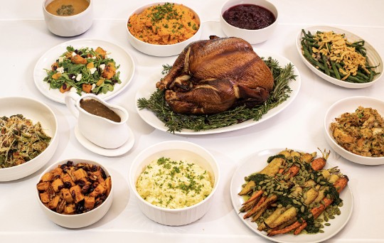 <p>A holiday table that goes above and beyond. This feast starts with a tender Diestel turkey and classic sides like traditional mashed potatoes, savory stuffing, and sweet mashed yams. From there, it expands into a true celebration: roasted butternut squash with cranberries and pecans, crispy Parmesan Brussels sprouts, and roasted carrots topped with harissa chimichurri. A maple roasted butternut squash and arugula salad and a velvety pumpkin bisque bring extra color and flair, while rich gravy and bright cranberry relish tie it all together. A complete holiday spread designed to impress every guest.</p>